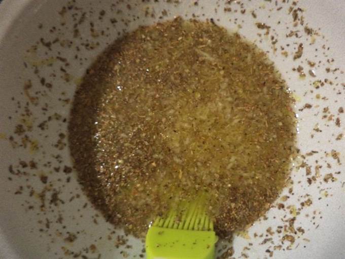 Для глазури смешать жидкий мёд с соком и цедрой лимона. Добавить измельчённый чеснок, орегано, базилик и тимьян, посолить и перемешать.