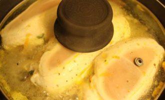 • Готовьте под крышкой на среднем огне. Когда мясо «схватится», переверните рулеты.