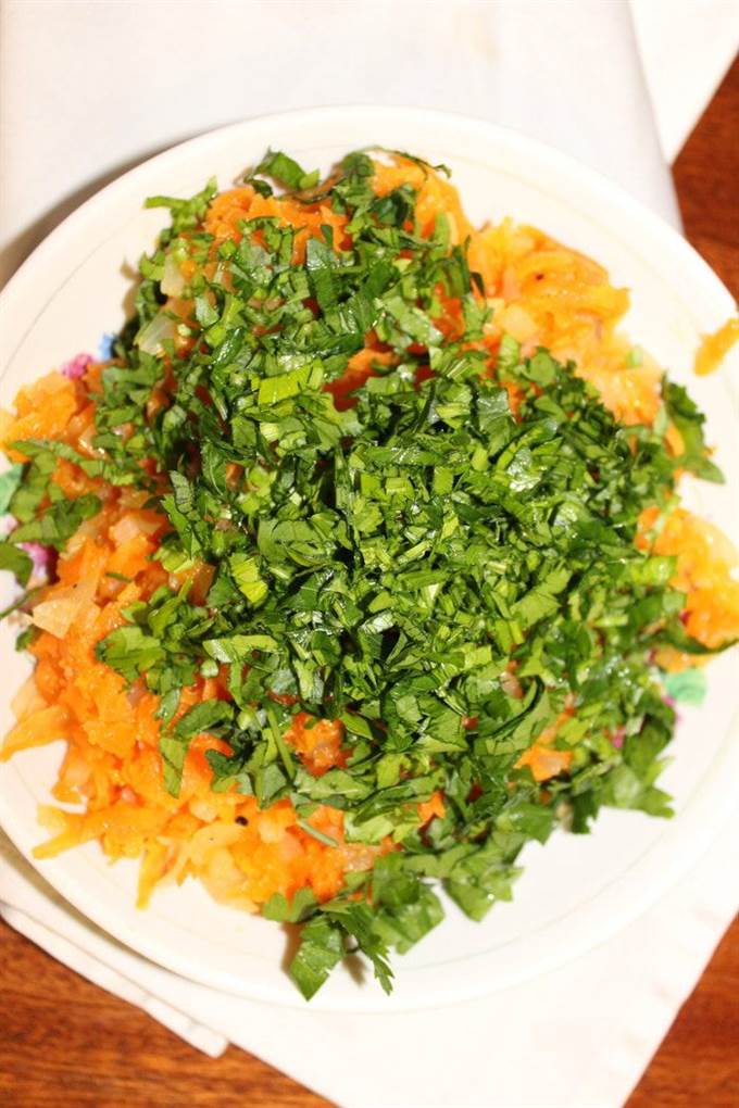• Когда овощи протушились, выложите их в глубокую миску и остудите. Петрушку мелко порубите, добавьте к моркови с луком и перемешайте.
