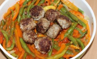 Овощи соединить с фрикадельками, потушить 5 — 6 минут под крышкой. Приятного аппетита!