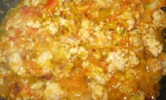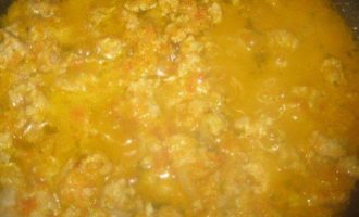 Добавьте мясной фарш, перемешивая.