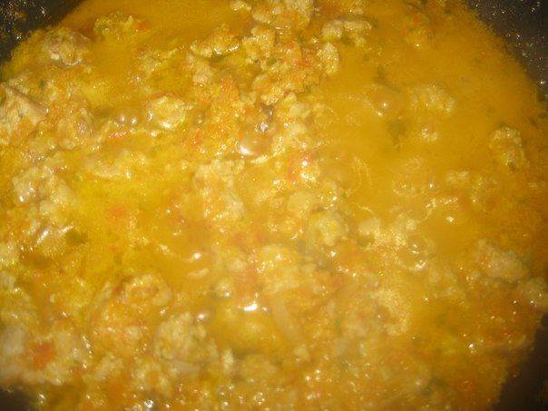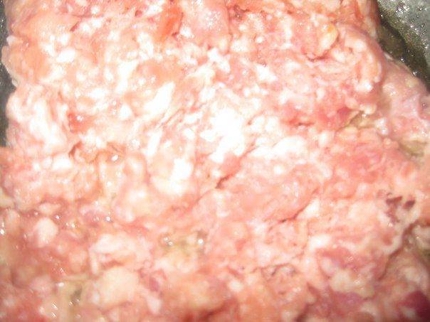 Добавьте мясной фарш, перемешивая.