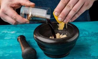 Готовим маринад. Смешиваем соевый соус, лимонный сок, белый перец и чеснок.