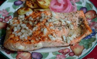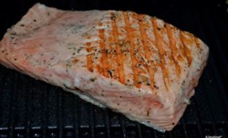Подготовим гриль, смажем маслом прутья. Выложим семгу в маринаде на домашний гриль. Обжариваем на гриле, если нет гриля в духовке при температуре 200 градусов до готовности.