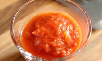 Если нет готового томатного соуса для пиццы, можно его приготовить самостоятельно. Для этого в сковороде разогреть 1 ст. л. оливкового масла и добавить 2 раздавленных дольки чеснока. Прогреть в течение 2-3 минут, затем убрать чеснок и добавить томатной пассаты или резанных томатов (200-250 мл) и несколько листиков базилика или 1 ч. л. сушёного орегано. Довести соус до кипения на маленьком огне. Остудить.