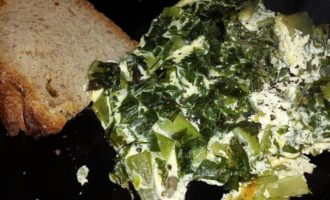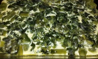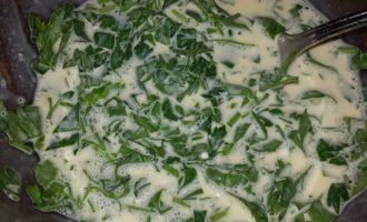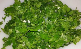 Соединяем яично-сырную смесь с петрушкой и чесноком, перемешиваем.