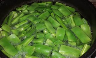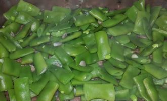 Фасоль моем, удаляем хвостики и режем на несколько частей.