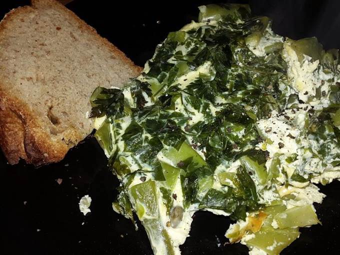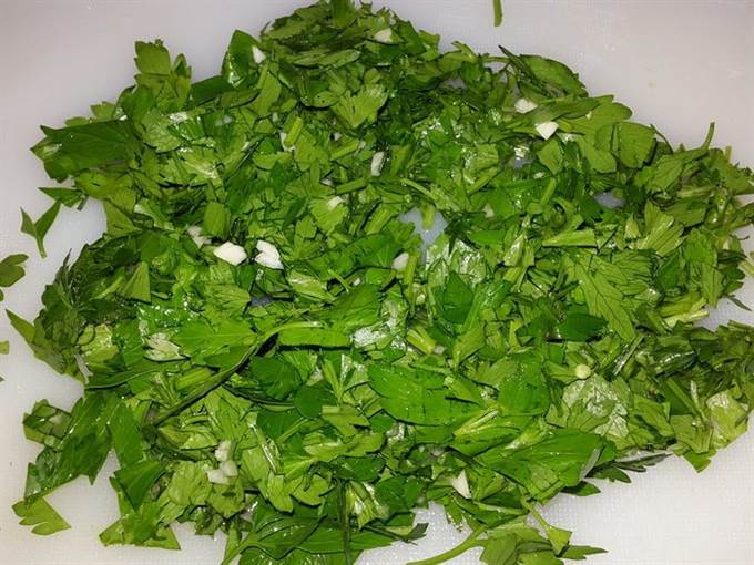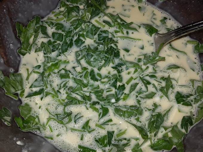 Соединяем яично-сырную смесь с петрушкой и чесноком, перемешиваем.