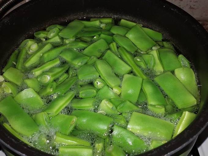 Фасоль моем, удаляем хвостики и режем на несколько частей.