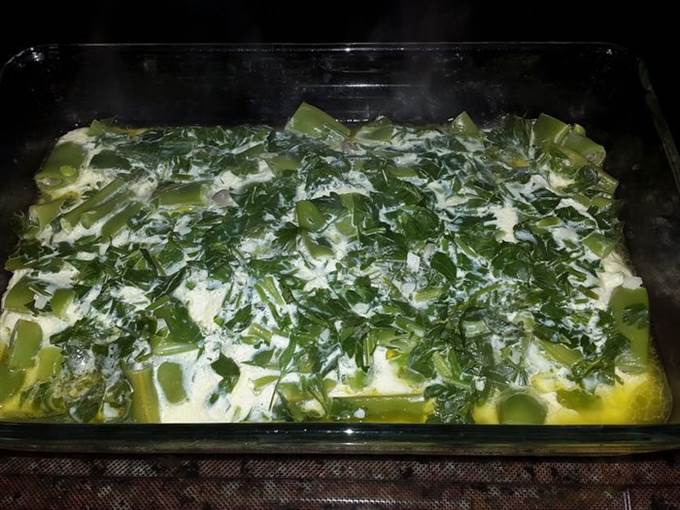 Фасоль откидываем на дуршлаг и выкладываем в смазанную оливковым маслом форму для запекания.