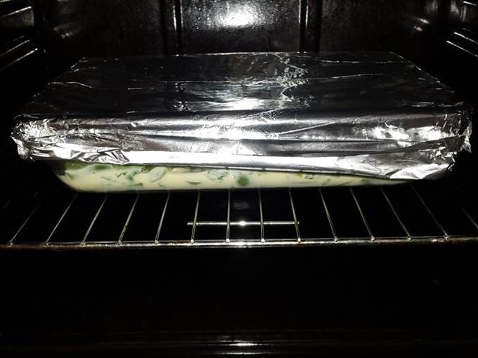 Накрываем форму фольгой и отправляем в духовку запекаться при температуре 200°С в течение 20 минут.