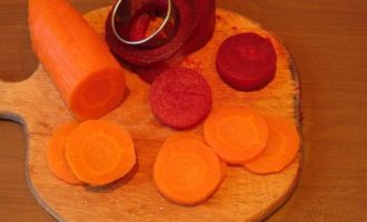 • Отвариваем морковь и свеклу, пригодится несколько кружков, в праздничные дни, да и не только, остатки можно использовать на салат.