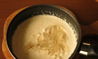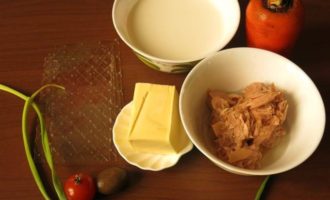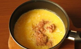 • Отжимаем желатин и растворяем в сливках с тунцом.
