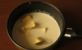 • Заливаем листовой желатин на 5 минут очищенной водой.