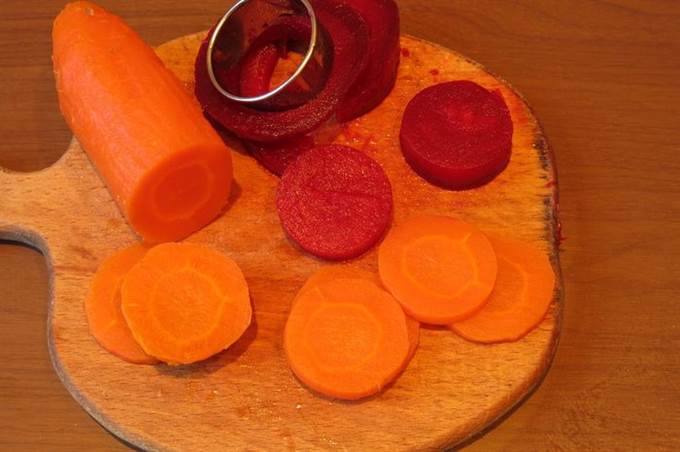 • Отвариваем морковь и свеклу, пригодится несколько кружков, в праздничные дни, да и не только, остатки можно использовать на салат.