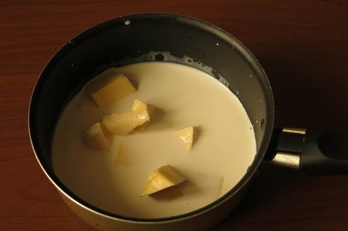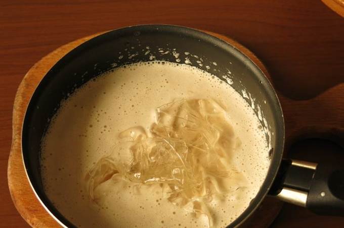 • Заливаем листовой желатин на 5 минут очищенной водой.