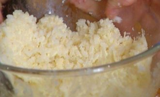 Готовый рис перемешать с маскарпоне и пармезаном.