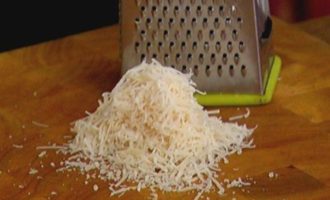 Пармезан натереть на мелкой терке.