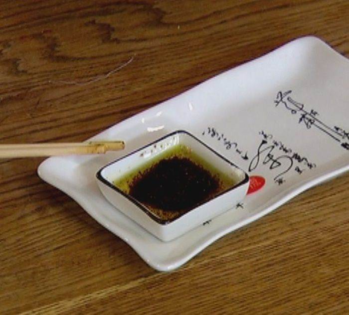 Охлажденные рулеты острым ножом разрезать на роллы и подавать с соусом.