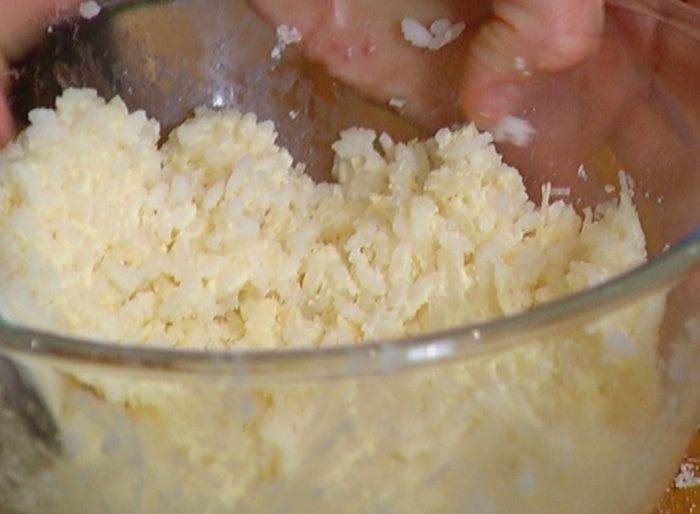 Готовый рис перемешать с маскарпоне и пармезаном.