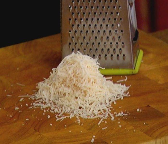 Пармезан натереть на мелкой терке.