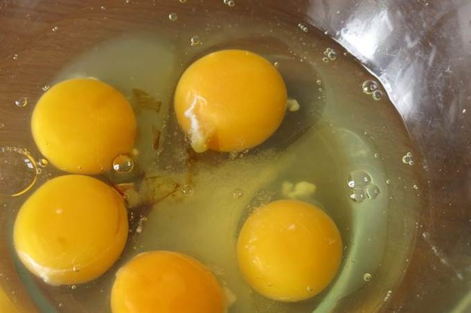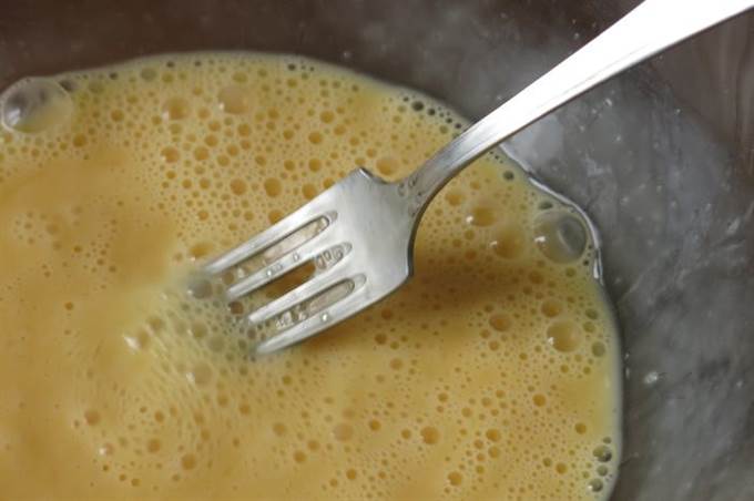 Пока варится рис, готовим омлет, добавляем к яйцам чайную ложку сахара, столовую ложку соевого соуса.
