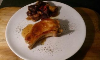 Выкладываем на тарелку чатни, корейку поливаем загустевшим яблочным соком, и обязательно молотый перец. Запахи жареного вяленого инжира и фиников перемешались с запахами корицы и гвоздики, острота чили, кисло-сладкая нотка яблок, пикантность печеного лука и аромат сливочного масла сделали гарнир просто потрясающим!