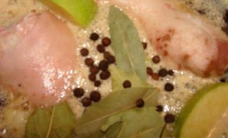 Залить темным пивом, посолить, добавить лавровый лист и перец. Поставить в холод на двое суток. После чего вынуть яблоки и лук, поставить варить на 6 часов.