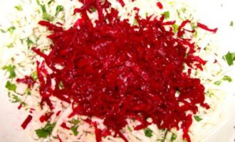 Свеклу натереть на терке и обжарить вместе с капустой до готовности.
