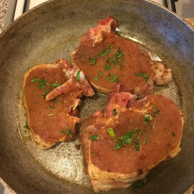 Натереть солью, перцем, вустерширским соусом и сухой аджикой. Оставить на 10 минут.