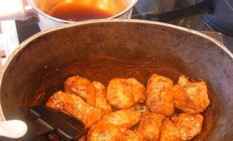 Затем опять достаем, переворачиваем кусочки и опять смазываем глазурью.