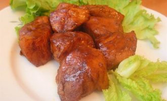 По истечении 20 минут, достаем мясо и кисточкой смазываем глазурью каждый кусочек. Отправляем в духовку на 10 минут.