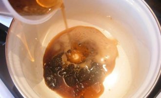 Готовим глазурь: в сотейник наливаем пиво, уксус, соль, сахар. Выпариваем минут 20, пока не останется треть от первоначального объема.