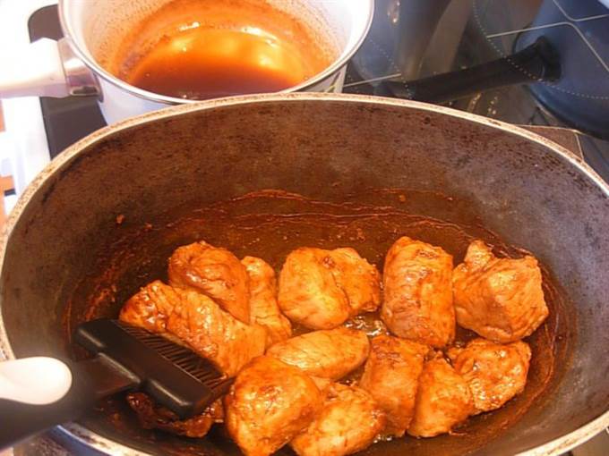 Сначала выделится сок, мясо будет тушиться и обжариваться за счет гриля. А затем, когда сок выпарится, жариться на масле. -