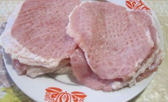 Мясо помыть, обсушить, отбить, посолить и поперчить.