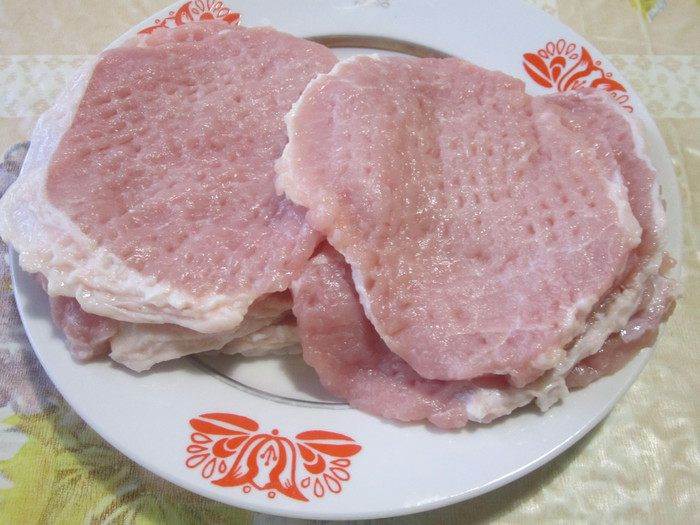 Мясо помыть, обсушить, отбить, посолить и поперчить.