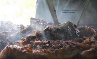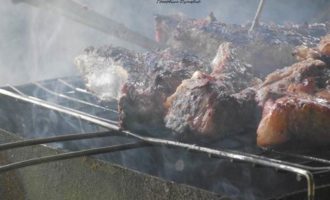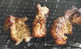 • Проверяйте готовность мяса так: если корочка уже красивая и хорошо зарумянившаяся, проверьте чтобы сок из мяса выходил прозрачный — это значит, что оно готово и ребрышки можно снимать с мангала.