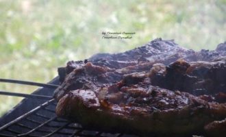 • Затем открываем сетку и продолжаем жарить ребра. В процессе жарки следите за тем, чтобы не вспыхивал огонь, периодически переворачивайте и поливайте ребра соусом, в котором они мариновались. Но и не переусердствуйте с маринадом — лишняя влага тоже не нужна.