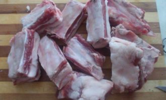 Ребрышки порезать на части.