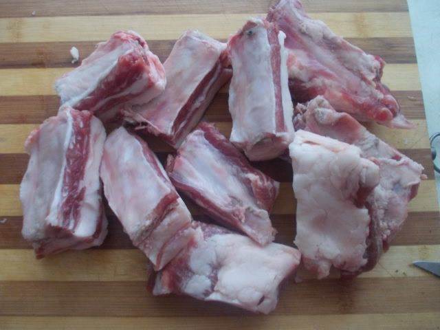 Ребрышки порезать на части.