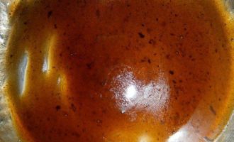 • Для соуса соединить в сотейнике свежевыжатый яблочный сок, кофе, соевый соус, добавить 1 ст. л. жира, оставшегося от запекания рёбрышек. Поставить на небольшой огонь и, помешивая, уварить до загустения. Дать остыть.