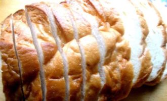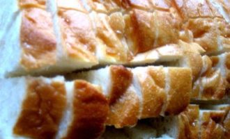 • Нужен не разрезанный батон или булка… но у нас почти все продают разрезанные, но ничего страшного… Если нашли целый, надрезаем на порции не до конца!
