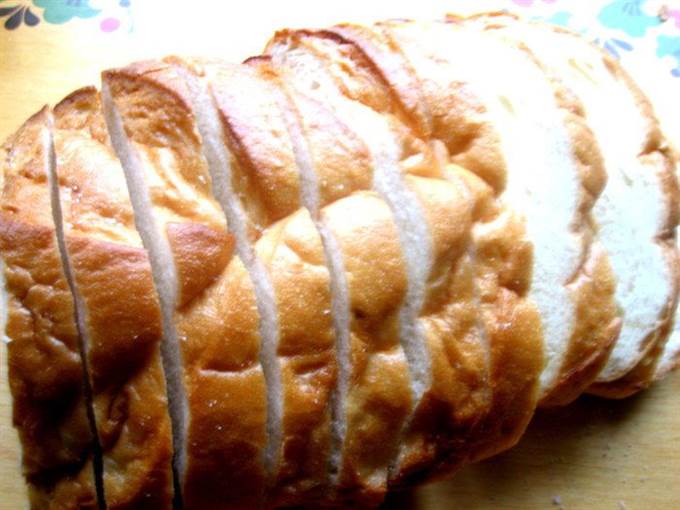 • Нужен не разрезанный батон или булка… но у нас почти все продают разрезанные, но ничего страшного… Если нашли целый, надрезаем на порции не до конца!