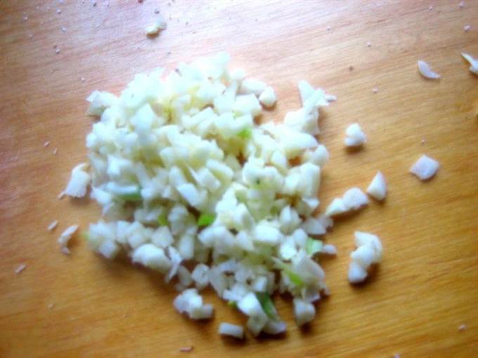 • Чеснок измельчить.