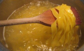 • Отварить пасту согласно инструкции на упаковке. У меня свежая и готовится 4 минуты.