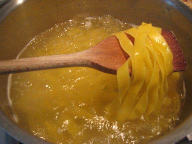 • Отварить пасту согласно инструкции на упаковке. У меня свежая и готовится 4 минуты.