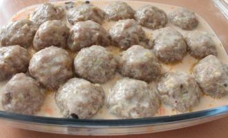 Соус распределяем с помощью ложки, поливая каждый мясной шарик, уровень соуса должен быть немного ниже верха тефтелей. Я запекаю тефтели в стеклянной форме и поэтому ставлю ее в еще не нагретую духовку, чтобы она нагревалась постепенно и не лопнула. Накрыть форму крышкой, температуру выставить на 180 градусов. Запекать тефтели 1 час 30 минут. Подавать с овощным салатом или любимым гарниром.