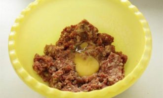 В фарш добавить мелко нарезанный чеснок, яйцо.
