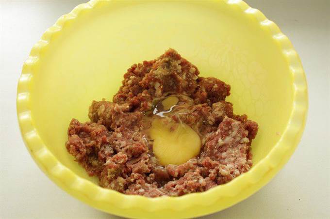 В фарш добавить мелко нарезанный чеснок, яйцо.