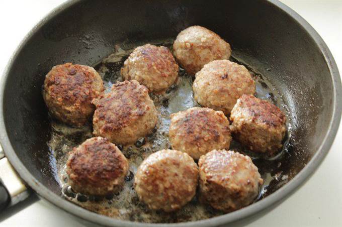 Обжарить тефтели до золотистой корочки 5 — 7 минут со всех сторон.
